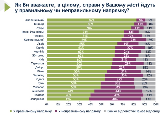 Загалом 78% лучан вважають, що справи в місті йдуть у правильному напрямку. Це третій результат в Україні після Хмельницького та Вінниці.Окрім того, за результатами дослідження, Луцьк – третє місто після Харкова та Хмельницького за підтримкою міської влади. 68% мешканців Луцька цілком схвалюють або швидше схвалюють діяльність міського голови. І 71% лучан цілком схвалює або швидше схвалює діяльність міської ради.Як прокоментував Луцький міський голова Ігор Поліщук, результати муніципального опитування Міжнародного республіканського інституту, згідно з якими Луцьк набрав найвищу кількість балів за комфортністю міста, є цілком заслуженими.