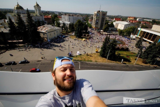 Завдяки фотографу Роману Домбровському є нагода побачити рідне місто з несподіваного ракурсу, з місця, яке розташоване на перехресті головних доріг, на лобному місці Луцька.