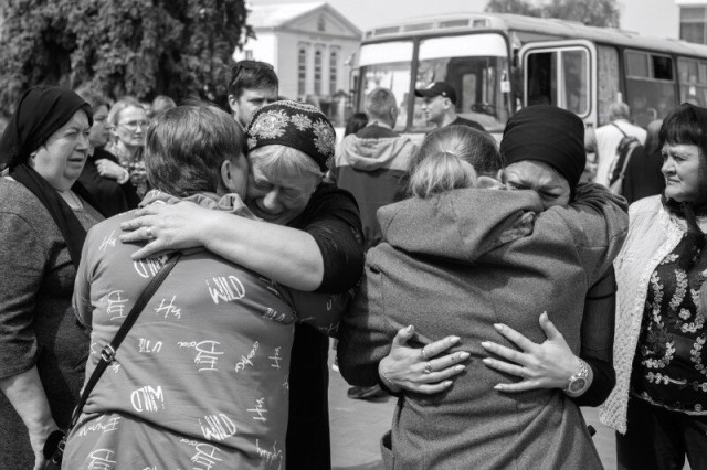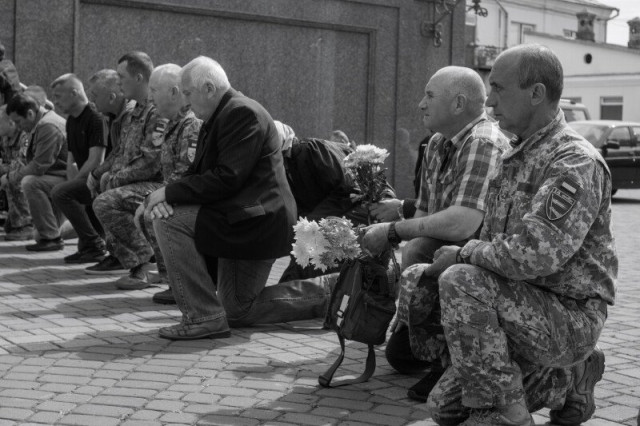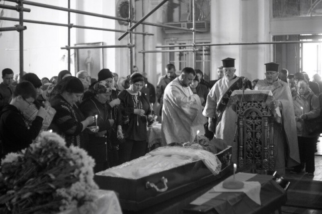 Після завершення панахиди домовину з тілом Героя прощальною ходою пронесли Театральним майданом. У цей момент лучани, віддаючи останню шану загиблому, утворили живий коридор і прихилили коліна перед захисником. Біля фотостенду «Герої Небесної Сотні – Загинули за єдність України» скорботна процесія зупинилася і виконала Державний Гімн.