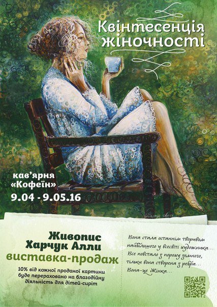 Зауважимо, що 9 квітня у Луцьку відбудеться презентація нової виставки художниці Алли Харчук – «Квінтесенція жіночності».