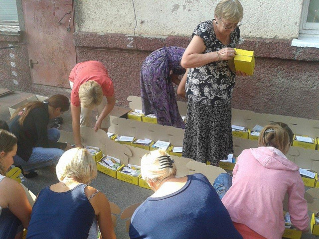 «Спершу закупляли коробки в «Укрпошті», згодом їх погодився надавати Картоннорубероїдний завод. Все ж вони вирішили теж купувати коробки в «Укрпошти». Проте, коробки на складі підприємства закінчилися», - кажуть організатори.