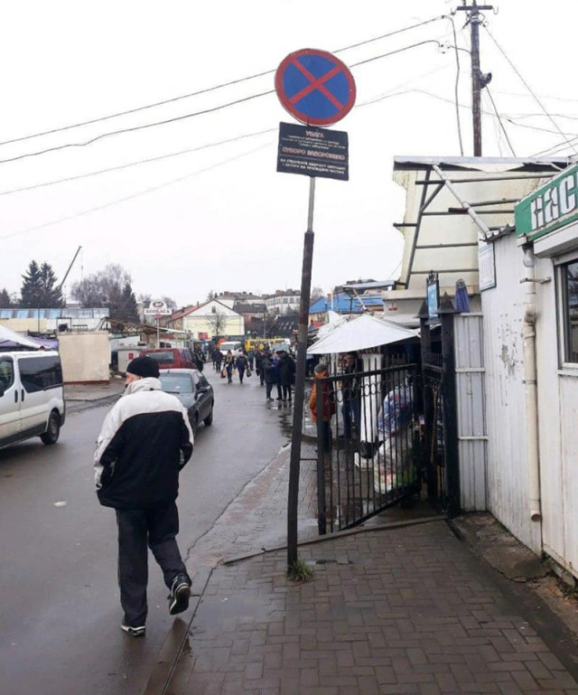 Луцькі базарники розвернули знак, аби їх не штрафували за блокування дороги