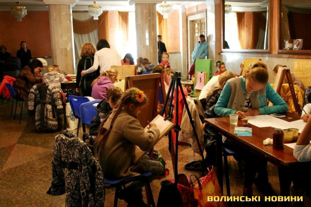 Маленьких та дорослих художників прийняв у себе Палац культури Луцька. Своє професійне свято вони відзначили з пензлем та олівцями в руках.
