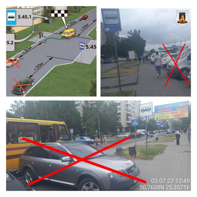 В ході розгляду звернення інспектором з паркування було виявлено автомобілі, які припарковані з порушенням ПДР, та винесено повідомлення про притягнення до адміністративної відповідальності за ч. 3 ст. 122 КУпАП (п. 15.9 «е» ПДР України). Йдеться про порушення правил зупинки, а саме здійснення зупинки транспортного засобу ближче 30 метрів від знаку зупинки маршрутних ТЗ та створення перешкоди дорожньому руху, за що передбачена відповідальність у вигляді штрафу в розмірі 680 грн.