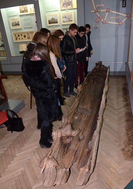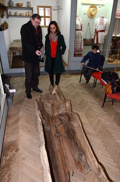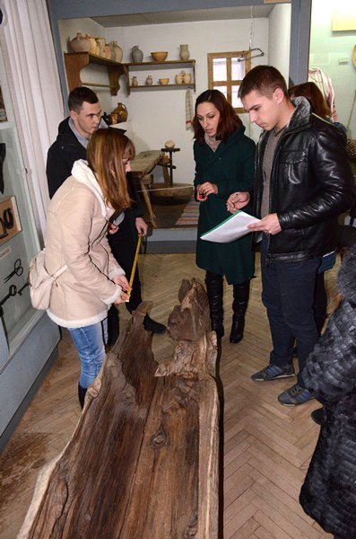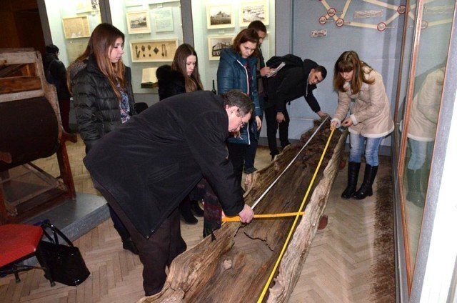 У приміщені Волинського краєзнавчого музею студенти 31 групи кафедри дизайну Луцького національно технічного університету, з метою виготовлення облікової документації, здійснили обстеження унікального експоната відділу давньої історії – човна-однодеревця з Ковельського району.