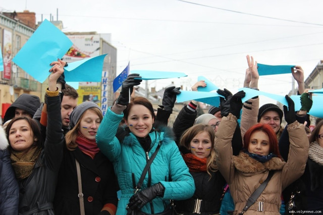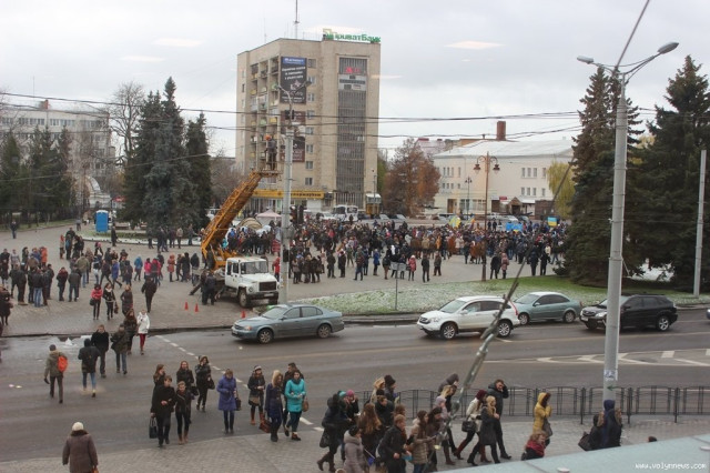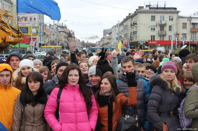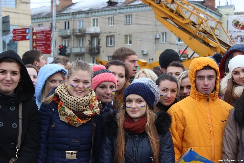 Луцькі студенти утворили знак «ЄС» на Театральному майдані. ФОТО