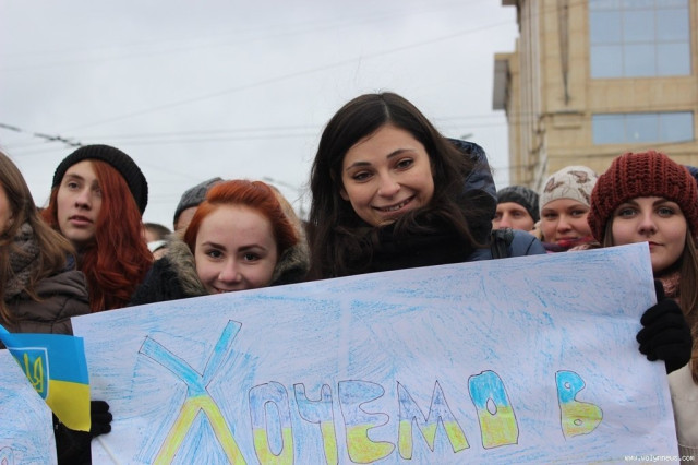 Як розповіли присутні, прийшли вони сюди для того, щоб підтримати країну у непростий для неї час та добитись того, щоб наша держава стала членом великої європейської сім’ї.