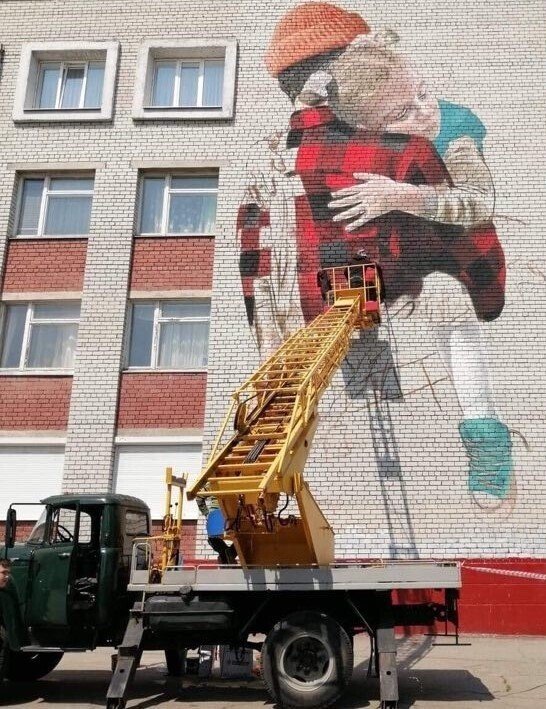 Художник Андрій Кальков із Луцька у Запоріжжі намалював малюнок на будівлі Запорізької школи мистецтв №3.