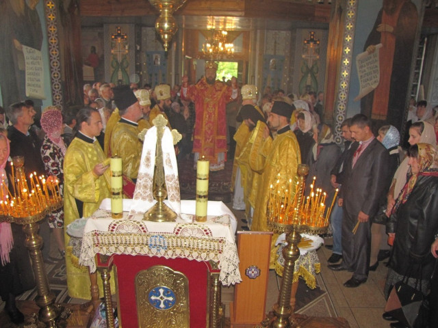 На завершення празника архієрей вручив свідоцтва випускникам парафіяльної недільної школи, а потім відбувся традиційний хресний хід навколо храму з обнесенням ікони з часткою мощей святителя Феодосія Чернігівського.