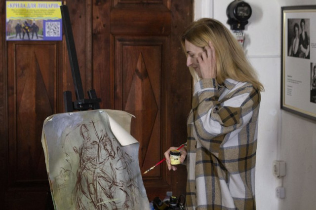 Як розповіла Суспільному художниця, представила в образах лицарів портрети військовослужбовців, котрі захоплюються лицарськими боями та історичними реконструкціями.