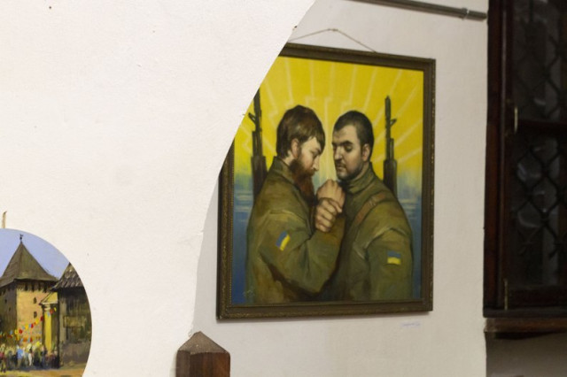 На одній із картин мисткиня зобразила портрети двох військових, назвавши її «Побратими».