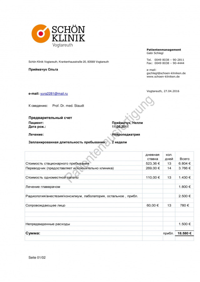 Наразі дитині потрібне лікування закордоном. Прийняти Неллі погодилася німецька клініка «Vogtareuth», виставивши рахунок на 18580 євро.