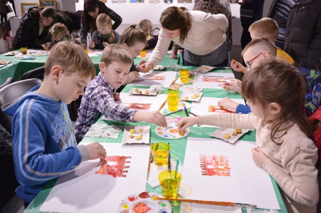 Після екскурсії Арт-галереєю, яку для юних художників провів Володимир Жупанюк, діти опановували техніку штампування картоплею. Зазначимо, що пані Алла – голова громадської організації «Чарівний пензлик», у якій займаються близько 60 вихованців.