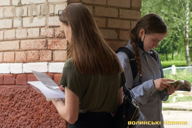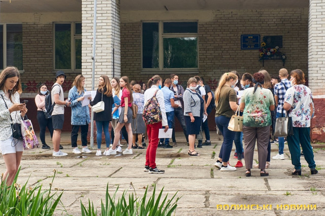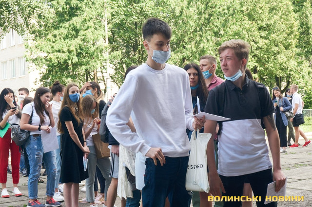 Учасники оцінювання демонструють знання з української мови та літератури. На цей іспит зареєструвалося найбільше осіб: 11654 з 11 700. Усе тому, що результат саме цього випробування є одним із обов’язкових при вступі за будь-якою спеціальністю.Журналісти Інформаційного агентства Волинські Новини відвідали три пункти проведення ЗНО із 17 визначених: комунальний заклад «Луцький НВК загальноосвітня школа І-ІІ ступенів №10-професійний ліцей Луцької міської ради», комунальний заклад «Луцька загальноосвітня школа І-ІІІ ступенів №19 Луцької міської ради Волинської області» та комунальний заклад «Луцький НВК №26 Луцької міської ради Волинської області». Картина всюди приблизно однакова.Учасники незалежного оцінювання почали збиратися задовго до початку іспитів. Настрій в усіх піднесено-схвильований. Багато хто повторює завдання, налаштовується на іспит. Вчорашні школярі розповідають, що переляку немає: хтось вже складав математику 25 червня і має досвід, а хтось пояснює простіше: «Після 11 років навчання і карантину вже не страшно».Двері шкіл відчиняються близько 10 ранку. Випускники формують чергу і… дістають захисні маски – на вході попереджають про їх обов’язковість та проводять температурний скринінг. До речі, в масках учасникам ЗНО доведеться бути увесь час, доки писатимуть тест. Не дуже комфортно, але усі ставляться до вимоги з розумінням.Черга рухається швидко. І педагоги, і патрульні поліцейські відзначають, що усе відбувається у штатному режимі – без інцидентів. Невелика плутанина виникає біля дверей НВК №10 – випускник шукає 19-ту школу, яка зовсім поряд. Чергові кажуть: таке трапляється досить часто. На щастя, поки це єдина проблема.Близько 10:45 площі перед школами майже порожні. Помітно кількох людей – поодинокі постаті та групи – батьки випускників. Кажуть, що діти відмовляли від присутності, але так самим якось спокійніше. За десять хвилин до початку ЗНО двері дільниць зачиняються. Тепер, на жаль, потрапити туди неможливо. Останні хвилини тягнуться найдовше і ось – іспит розпочинається!Нагадуємо, що основна сесія ЗНО стартувала 25 червня й завершиться 17 липня. Дати майбутніх іспитів такі: