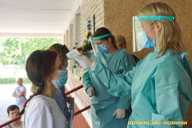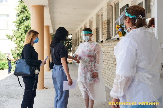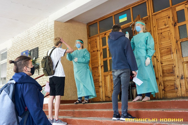 Маски, захисні костюми та термометр: як у Луцьку відбувається ЗНО. Фоторепортаж