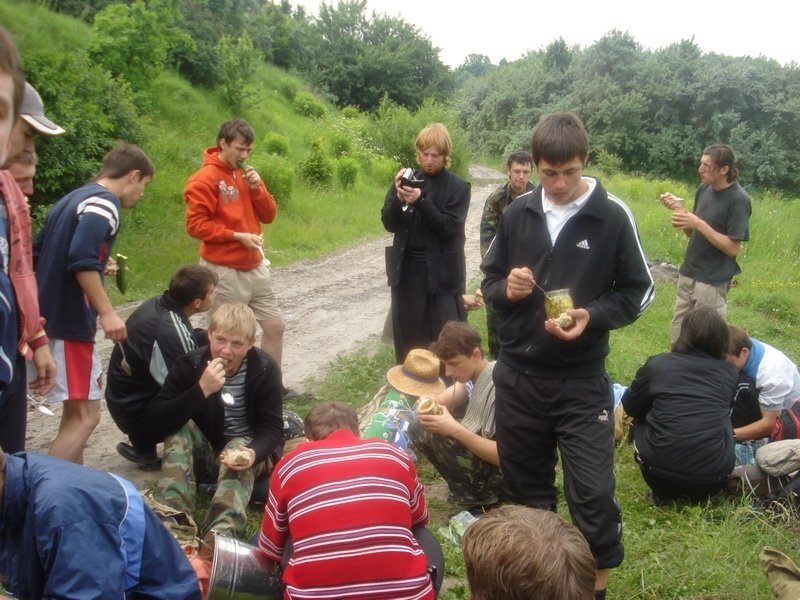 Наступний привал був біля села Пляшова – тут через сильні дощі простояли два дні. Безперечно найбільше запам’ятається хлопцям став несподіваний візит митрополита Ніфонта. Владика пригостив подорожуючих привезеними пиріжками і полуницями, довго бесідував з вихованцями на різні теми і відповів на їх численні запитання. По дорозі паломники відвідали меморіальний комплекс «Козацькі могили».