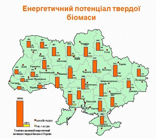 Економічний потенціал біомаси в Україні для виробництва твердого біопалива становив у 2013 році 18,021 мільйона тонн нафтового еквіваленту, що може замістити 21,6 мільярда метрів кубічних газу.