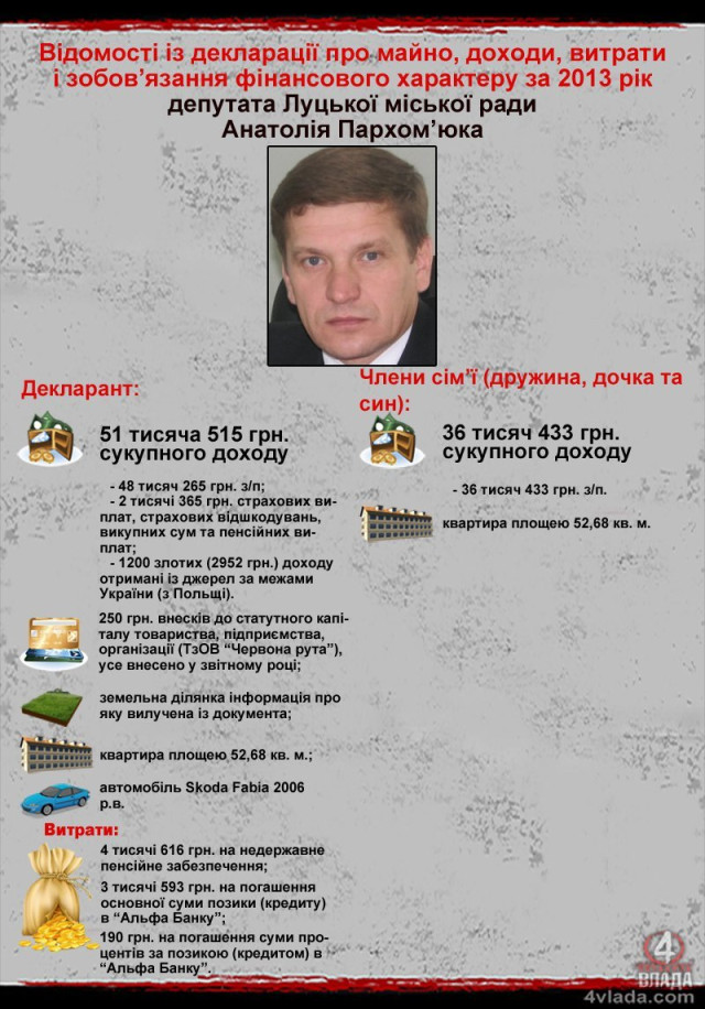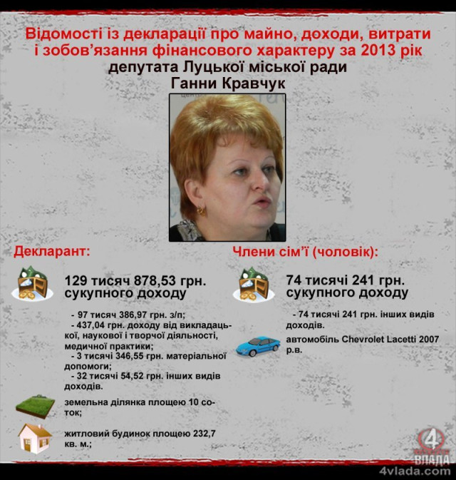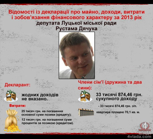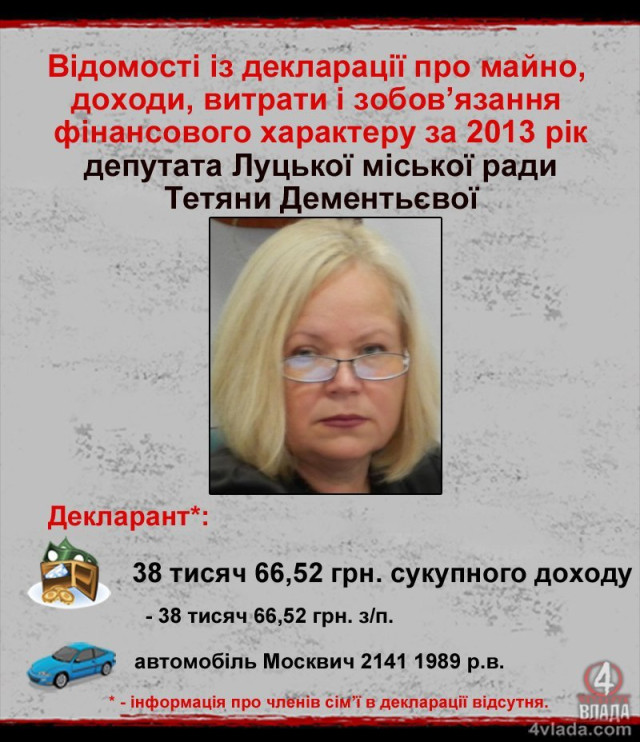 Частина депутатів Луцької міської ради не декларує ні нерухомості, ні транспортних засобів, а дехто не має навіть і доходів, проте є й такі, які мають по кілька будинків, гектари землі та дорогі автомобілі. Окремі ж депутати умудряються за повної відсутності доходів сплачувати кількатисячні кредити.
