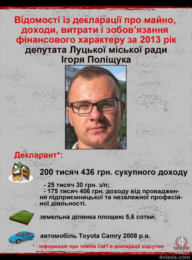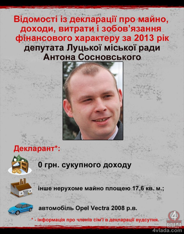 Разом з тим, ще один депутат Луцької міськради Григорій Пустовіт оприлюднив свою декларацію ще під час перебування на посаді голови Волинської ОДА.