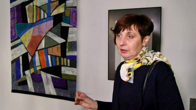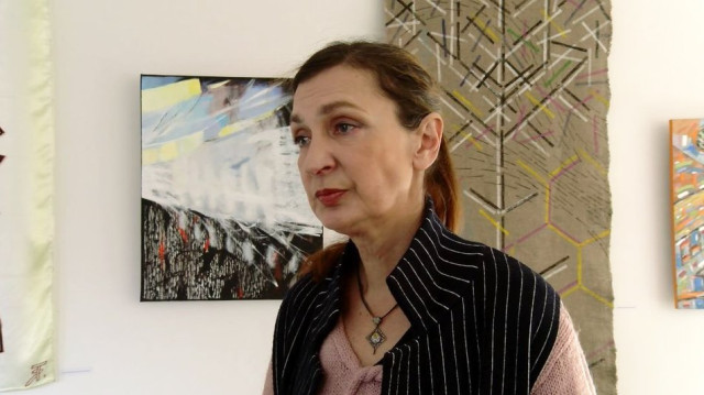Як розповіла Суспільному художниця Оксана Ядчук-Мачинська, у роботах переважає теми війни, що триває в Україні понад вісім років.
