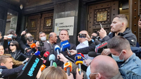 Медведчук вийшов з будівлі Офісу генпрокурора. Там він пробув дві з половиною години. Очікувалося, що його можуть арештувати. Політик ознайомився з висунутою йому підозрою, але каже, що офіційно її так і не вручили.