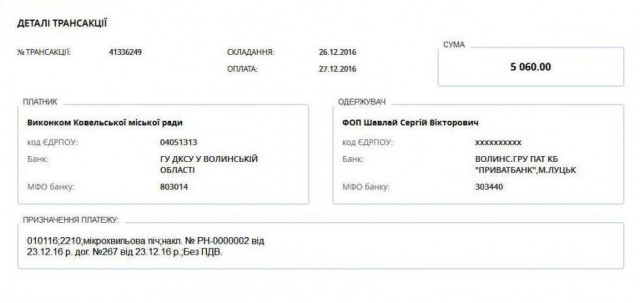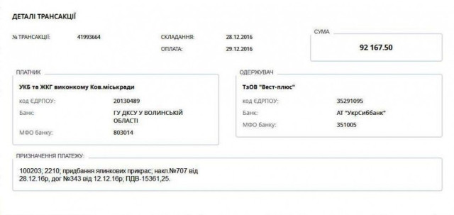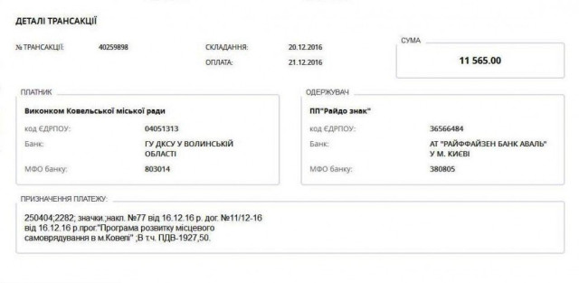 Як свідчать фінансові документи, виконком купив у приватного підприємця з Ковеля дві мікрохвильові печі. Хоча у трансакції зазначається одна піч. Хотілося б вірити, що необхідне придбання відбувалося через систему електронних державних закупівель ProZorro. За словами самих чиновників, одна з мікрохвильовок допомагає у роботі працівникам бухгалтерії. До якого відділу, управління чи посадової особи «приписана» інша – невідомо.Але це ще не всі передноворічні закупівлі. Виконком придбав у приватного підприємства «Райдо знак» (м. Київ) значків на 11,5 тисяч гривень. Як стверджують чиновники, вони потрібні для популяризації міста, відповідно до «Програми розвитку місцевого самоврядування в м. Ковелі». Нібито, значок вартує 36 гривень. Прапорців у місцевого підприємця закуплено на 4 685 гривень, блокнотів та листівок – на 16 400 гривень.Втім, найбільше довелося викласти бюджетних коштів на придбання ялинкових прикрас. Управління капітального будівництва та ЖКГ виконкому разом із своїм відділом комунального господарства заплатили за них столичній фірмі та приватному підприємцю майже 150 тисяч гривень. Нагадаємо, що у грудні 2015 року мерія придбала біло-синю ілюмінацію, якою прикрасили «Білий» дім та ялини на центральній площі.