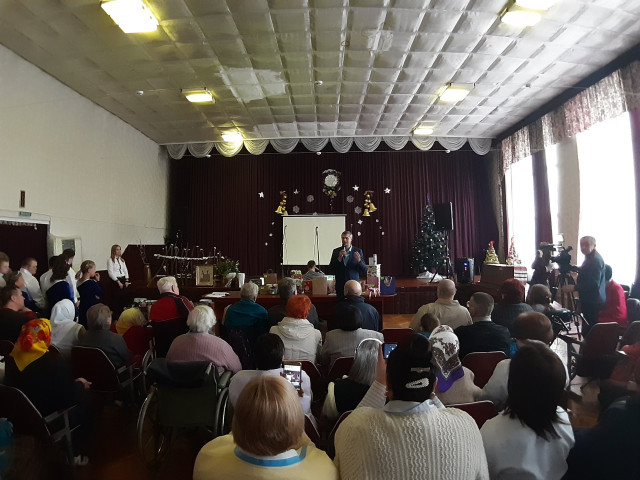 У другий день Різдва для мешканців пансіонату організували святковий концерт, на який прийшли чи не усі, хто проживає у закладі. На столі перед сценою - стіл, на якому у гарних обгортках – виконані «мрії» мешканців пансіонату.