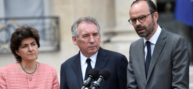 Автор законопроекту - лідер Демократичного руху Франсуа Байру, міністр юстиції Франції. Його політична сила в другому турі французьких виборів отримала 42 мандати в тих округах, де партія Макрона не виставляти своїх кандидатів.Прем'єр-міністр Едуар Філіп (праворуч) сказав, що Франсуа Байру (в центрі) залишиться на посаді міністра юстиції
