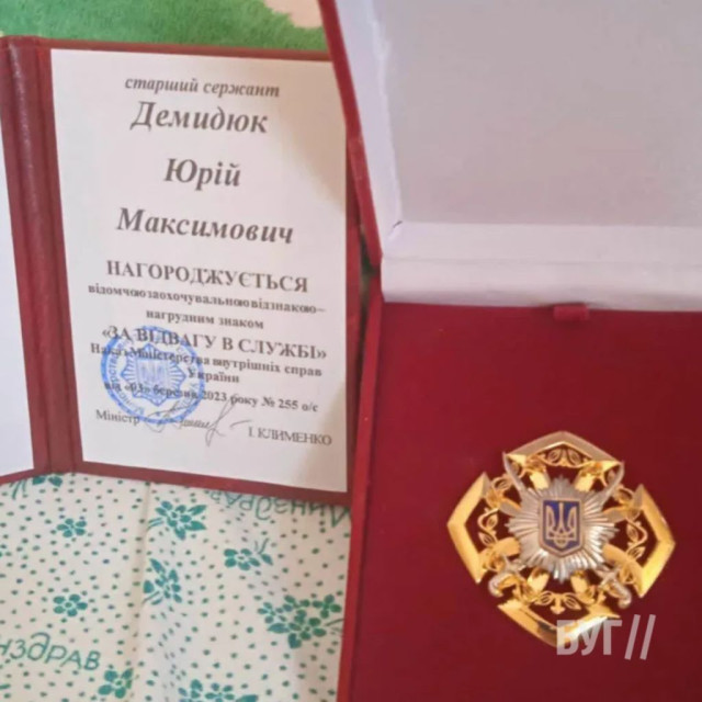 Віськовослужбовцю з села Вощатин Володимирської громади Юрію Демедюку, який проходить лікування, вручили відомчу заохочувальну відзнаку МВС України «За відвагу в службі».