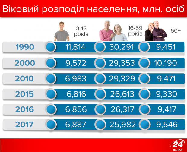 Мінус 10 млн: як змінювалась демографічна структура України за 26 років