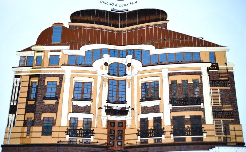 (Фото: проект нового будинку на місці нещодавнього демонтованого на розі вулиць Словацького і Шевченка)