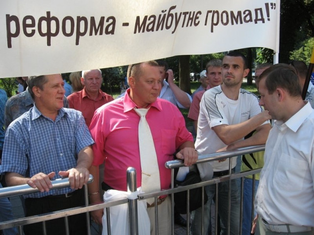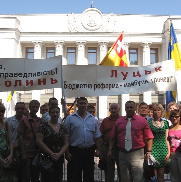 «Верховна рада, подолай несправедливість!», «Бюджетна реформа – майбутнє громад», – було написано на плакатах волинян, які вони розгорнули під стінами Верховної Ради 24 липня. Учасники волинської делегації отримали змогу поспілкуватися з народними депутатами від БЮТу, волинянами Віктором Олійником та Миколою Потапчуком, які розповіли про стан справ навколо подолання вета Президента.