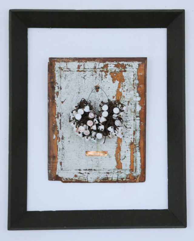 Денис Мозговенко про інсталяцію «Пивне намисто Першої світової війни»: «Якось під час перебування в Турійському районі я натрапив на цікаву знахідку часів Першої світової війни. Виявляється, німці побудували там пивний завод, щоб регулярно забезпечувати своїх солдат алкогольними напоями. Я зібрав кришки з пивних пляшок, які там знайшов, і зробив роботу із цими зібраними у вигляді серця кришками. В екстремальних умовах війни алкоголь відігравав роль антистресу для солдат, викликаючи у них залежність. На жаль, це актуально і зараз».