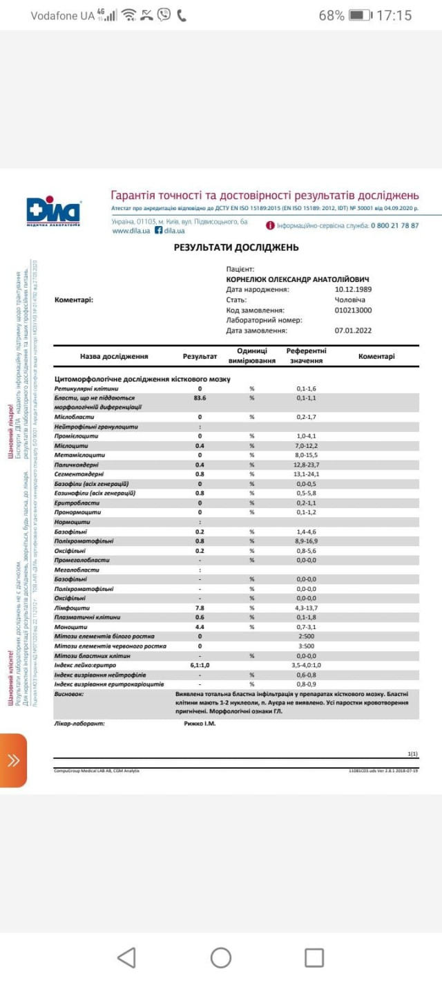 Як розповіла сестра Олександра Ірина Лукашук, попереду в нього дуже великий і дорогий шлях, треба пройти курс хіміотерапій і потрібна пересадка кісткового мозку.