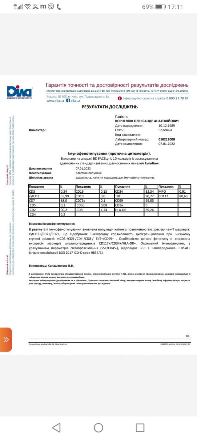 На початку січня чоловікові поставили діагноз лімфобластний лейкоз, інформують родичі у Фейсбуці.
