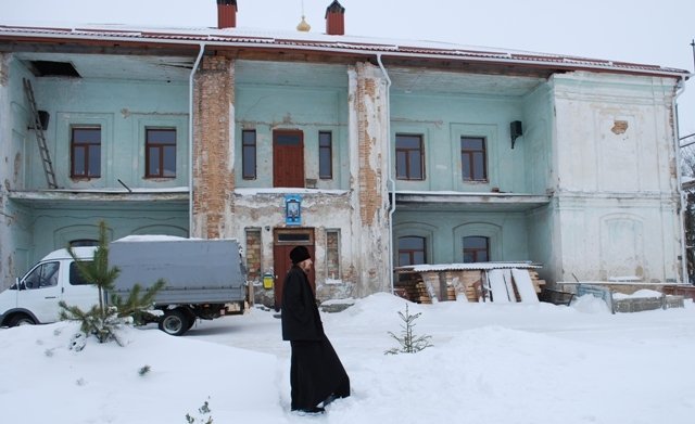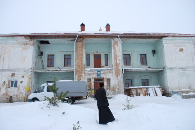 Монахи сюди прийшли у 2003 році. До цього часу приміщення стояло пусткою більш ніж десятиліття. Злодії, вандали і час знищили усе, крім стін.