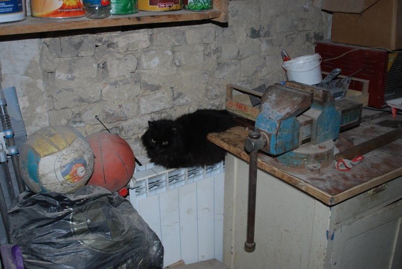 В обителі живуть і тварини. Чорний кіт Барсік частенько гріється на батареї.