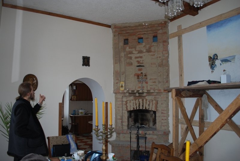 Весь будинок опалювався системою камінів. На першому поверсі такий камін уже відновили. Як розповідає нинішній намісник монастиря ігумен Констянтин, вони реставрували камін, але димоходи залишилися з минулих епох.