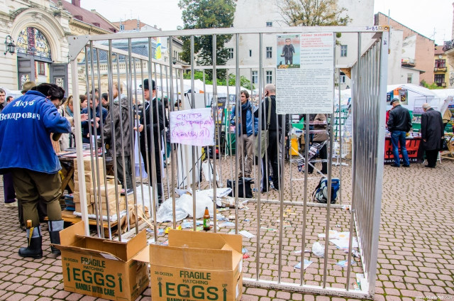 «Жлоби не читають книжок. Тому, дітки, подивіться, у кого ви можете перетворитись, не читаючи», - повчав присутніх Антін Мухарський, час від часу попереджуючи людей, щоб ті не близько не наближались до клітки, адже там – «небезпечні тварини».