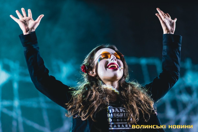 Усе це – про виступ у Луцьку столичного жіночого гурту Dakh Daughters, який складається з акторок театру «Дах» Влада Троїцького.Повен зал глядачів, які бурхливо реагували на кожен трек і танцювали. Гра світла і темряви. Графічні оздоби сцени. Драйвова, а часом тужлива музика з поезією або ж речитативом – від народних мотивів до оригінальних аранжувань, різними мовами. Це теж про виступ Dakh Daughters.Уявіть один із яскравих номерів, який називається «Слава Ісусу Христу»: актриса сидить на барабані і в образі старої жінки говіркою читає монолог про своє важке життя. А далі – потужний драйв (який не витримували навіть струни) та реп. Ось така еклектика і є характерною рисою гурту, його фішкою, яка приваблює, захоплює й не відпускає. Світло і тінь, смуток і радість, голосна, тиха музика і просто тиша, ритм і аритмія, норма і легке безумство…На завершення виступу зі сцени пролунали слова, нині важливі для нас усіх. Особливо контрастними вони видалися на тлі сценічних образів дівчат. Однак усі, хто знайомий із творчістю Dakh Daughters, добре знає їхню патріотичну позицію.