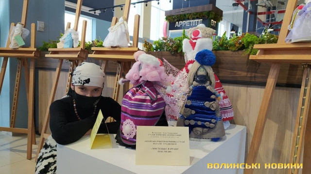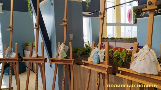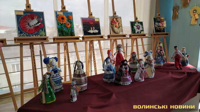 Фантазійні ангели, ляльки в національних костюмах, картини у техніці текстильної пластики – близько 50 творчих робіт представили 12 слухачок Волинського Акме-Університету на виставці, яка відкрилася в Арт-галереї луцького ЦУМу.