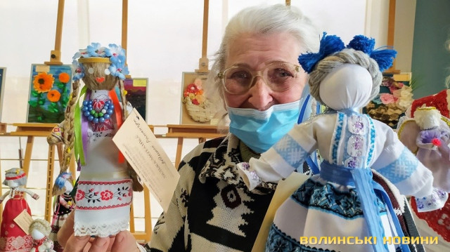 «І це лише частина великої колекції, з якої ми вже багато ляльок подарували нашим партнерам і друзям в Україні, а також в Польщі, Німеччині, Канаді, віддали на благодійні ярмарки. Ми надзвичайно задоволені з такої корисності нашої справи, – розповідає голова слухацького самоврядування Катерина Маркевич. – Ідея влаштувати виставку і показати усім нашу творчість народилася під час карантину».Волинський Акме-Університет працює протягом семи років як волонтерський проєкт викладачів факультету психології та соціології ВНУ імені Лесі Українки. Його слухачі – люди поважного віку, які ведуть активний спосіб життя й відкриті до нових знань. Вони займаються спортом, вивчають іноземні мови, оволодівають комп’ютером, багато спілкуються і мандрують. Тривалий карантин змінив їхні плани, але не позбавив змістовного дозвілля. А завдяки співпраці з волинською художницею й дизайнеркою Наталією Градиською цей час був присвячений спільній творчості.Слухачка Університету Людмила Сімон розповідає: «Наша доріжка до мистецтва почалася з персональної виставки Наталії Градиської тут в Арт-галереї кілька років тому. Ми були у захваті від її робіт і запросили до себе. Вже тоді під егідою ГО «Справа Кольпінга в Україні» мали певний досвід рукоділля. З Наталією Борисівною ми почали з маленького, а виросло все в такі шикарні картини! І є вже плани на майбутнє». Зустрічі на творчих майстерках стали постійними, і заняття художнім рукоділлям просувалися від простіших до складніших технік.Ось уже протягом кількох років Наталія Градиська на волонтерських засадах консультує «студенток» в Студії корисних компетенцій Університету. Художниця ділиться враженнями від спілкування з слухачками «золотого віку»: «Починали ми з малювання метеликів, потім зайнялися вирізанням, перейшли до простіших ляльок, мотанок, вчилися працювати з різними матеріалами. Ці ляльки – складніші авторські роботи. Коли ж зробили твори текстильної пластики і оформили їх в рамки, то підійшли до думки, що їх варто презентувати на виставці. Коли робиш щось красиве власними руками, то з’являється шлях, що далі з цим можна зробити. Але головне, що це дуже вдячні та старанні учениці, які швидко організовуються. З ними дуже приємно працювати». В інтер’єрі виставки поряд з творами слухачок Університету можна також побачити серію ляльок дизайнерки «Мистецькі варіації текстилю».Під час карантину студентки «золотого віку» зуміли швидко перейти на дистанційні форми взаємодії – майже всі вони мають смартфони і навчилися шукати потрібну інформацію в інтернеті, обмінюватися фото. Зустрічі та майстер-класи відбувалися в малих групах, у безпечних умовах. Життєрадісні оптимістки змогли адаптуватися до нових умов життя, навчання, не втрачали позитивного налаштування: «Ми продовжуємо радіти життю! Займаємося творчістю».Психологиня, викладачка факультету психології та соціології ВНУ Оксана Іванашко переконана, що робота з тканинами, нитками і папером для жінок – це потужне джерело позитиву. Творчість, культурно-мистецькі заходи покращують психологічний та емоційний стан слухачів Університету, серед яких більшість – ветерани праці, одинокі люди. Вона тепло привітала жінок з приємною подією. До привітань також приєднався керівник Арт-галереї Дмитро Зінько, з яким колектив слухачок по