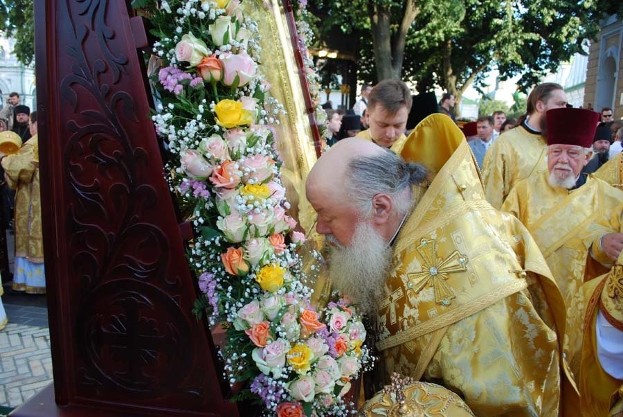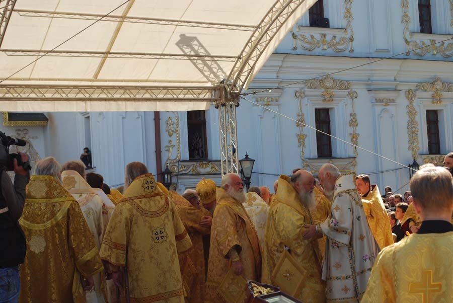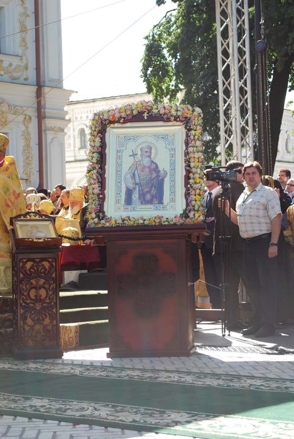 Під час молитви на престолі був ковчег із часткою мощів святого рівноапостольного князя Володимира. 28 липня, в день свята на честь хрестителя Київської Русі — святого князя Володимира, яке вже другий рік поспіль відзначається на загальнодержавному рівні, територія Верхньої Лаври була переповнена величезною кількістю віруючих, які прибули на Божественну літургію.