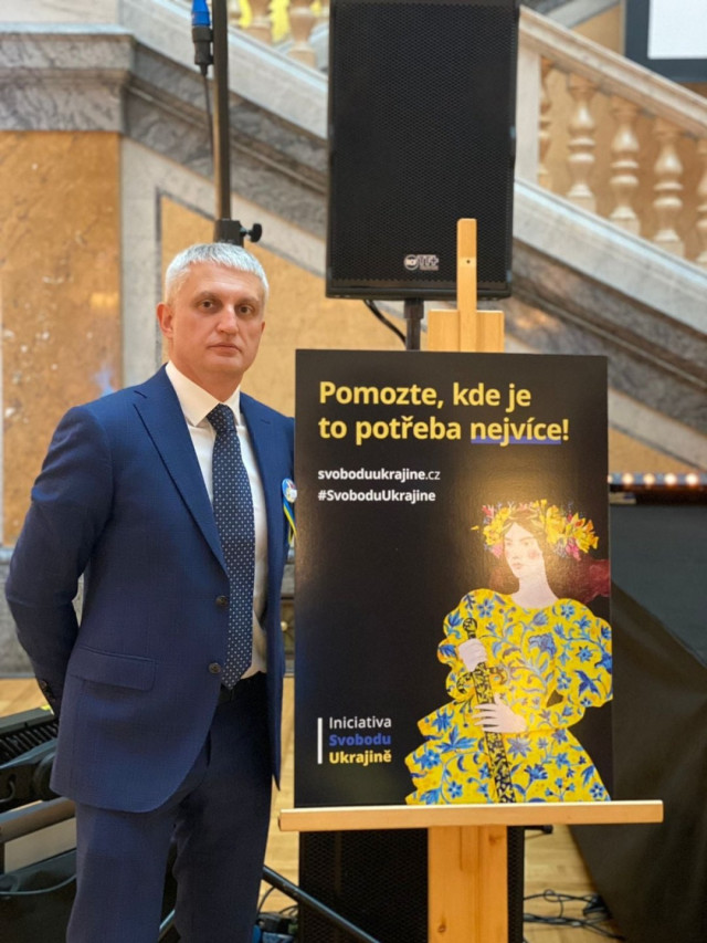 Ініціювала захід група підприємців, які об’єдналися заради порятунку України в ініціативу «Свободу Україні», яка допомагає пропагувати рахунок посольства на підтримку української армії серед чеського бізнесу.На аукціоні був присутній перший заступник Голови ВР України Олександр Корнієнко. Політик перебував у Празі з дводенним робочим візитом. У своєму виступі він заявив, що «українці – хоробра нація, нащадки дуже багатьох поколінь воїнів». Він нагадав про великий внесок українців у перемогу на фашизмом у роки Другої світової війни. «Але ми потребуємо допомоги, щоб наша боротьба, наша битва була більш ефективною, більш короткою, щоб це не розтягувалося на роки, і щоб ми могли якнайшвидше зупинити путінську Росію», – сказав перший заступник голови ВРУ.