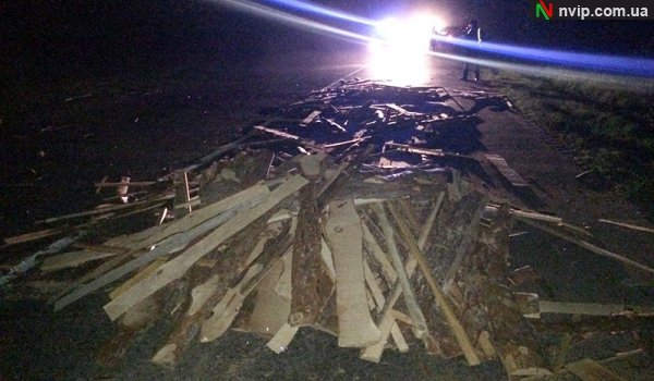 Сьогодні вночі, на трасі між містами Нововолинськ та Володимир-Волинський, були розкидані дошки. В районі села Новосілки із них утворилась ціла барикада заввишки приблизно 50-60 сантиметрів, яка перекрила цілу смугу дороги, де суцільна лінія розмітки.