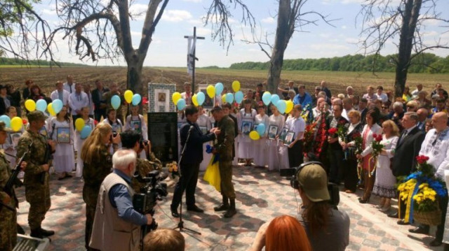 До присутніх зі скорботними словами звернулися чимало промовців. Зокрема, солдат Дмитро Волох, який вижив у бою біля Волновахи. «Хочу подякувати місцевим жителям, які врятували нас, поранених», – зазначив він.