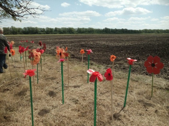 На місці розстріляного блокпоста поблизу Волновахи встановили хрест. А згодом володимирські волонтери ‒ меморіальну дошку з іменами вісімнадцятьох загиблих. На цьому місці і відслужило панахиду духовенство УПЦ КП.