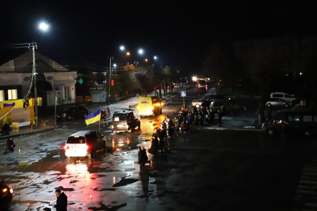 Жителі міста і сіл зі сльозами на очах, живим коридором Слави, на колінах, з національною символікою та викладеними лампадками обабіч дороги, зустріли скорботний кортеж із тілом воїна.