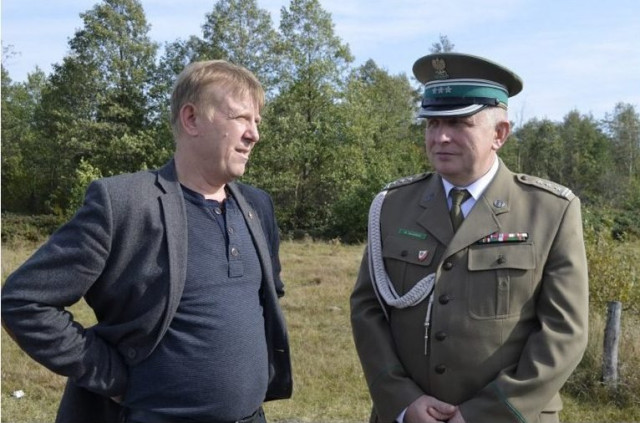 На фото Сергія ЦЮРИЦЯ: новий керівник Надбужанського відділу прикордонної варти РП полковник Вальдемар Скарбек спілкується з головним редактором «Волинської газети» Володимиром Данилюком.