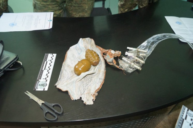 "Бійці батальйону патрульної служби особливого призначення "Скіф" разом зі працівниками Лисичанської поліції звернули увагу на чоловіка, який нервово поводився. Під час перевірки у хлопця було виявлено на тілі примотані скотчем запали до гранат, а самі гранати були заховані на ньому у білизні. Все виявлене було вилучено експертами – криміналістами та слідчими", - йдеться у повідомленні поліції Луганщини.